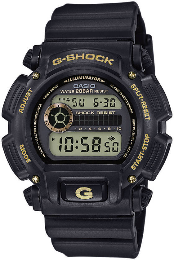 Casio G-Shock DW-9052GBX-1A9ER on ulkonäöltään uskollinen perinteiselle G-Shock -tyylille, mutta tuo pienillä kullanvärisillä yksityiskohdilla kokonaisuuteen myös sopivasti uutta. Mallistolle tyypilliseen tapaan myös tämä kello on äärimmäisen vankkaa tekoa. Iskunkestävyys ja 200 m vesitiiveys varmistavat, että kello kädessäsi voit suunnata huoletta lähes mihin tahansa!