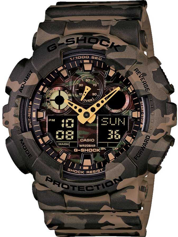Casio G-Shock GA-100CM-5AER camouflage kellossa on hieno vihertävä maastokuviointi. Kellon rungon leveys 55 mm ja paksuus 17 mm. Kellossa ominaisuuksina taustavalo, maailmanaika, ajastin, ajanotto, 5 hälytystä, tasatuntisignaali, ikuinen kalenteri, 200m vesitiivis ja 12/24h näyttö. Kello painaa 71 grammaa. Casio kelloille myönnetään 2 vuoden takuu ja ne toimitetaan valmistajan alkuperäisessä rasiassa.