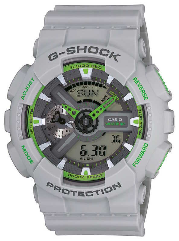 Casio G-Shock sarjan iskunkestävä Casio G-Shock GA-110TS-8A3 rannekello on vesitiivis 200m asti. Kellon runko ja ranneke on valmistettu kestävästä muovista. Kellossa on led-valo. Tämän lisäksi siinä on maailmanaika, 1/1000 sekunnin tarkkuudella aikaa mittaava ajanotto/sekkari, ajastin, 5 erillistä hälytystä/herätystä, tasatuntisignaali, kalenteri ja 12/24h näyttö. Kello painaa 72 grammaa, sen rungon leveys on 51mm ja paksuus 16,9mm. Casio kelloille myönnetään 2 vuoden takuu. Tuote toimitetaan valmistajan alkuperäisessä rasiassa.