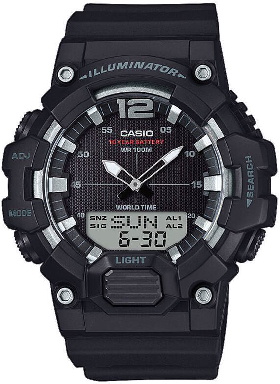Casio HDC-700-1AVEF Ana-Digi on edullinen ja kestävä viisarikello, jossa myös digitaalinäyttö. Tässä kokomustassa mallissa on vaalea digitaalinäyttö. Kellon rungon leveys on 48.8 mm ja paksuus 16,6mm. Paino 49 grammaa. Casio kelloille myönnetään 2 vuoden takuu ja ne toimitetaan valmistajan alkuperäisessä rasiassa.