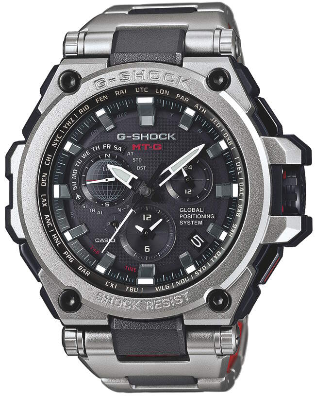 Casio MT-G GPS G-Shock MTG-G1000RS-1AER -rannekello kuuluu äärimmäisiin olosuhteisiin ja kovaan käyttöön tarkoitettuun Casion MT-G eli Metal Twisted G-Shock -tuotesarjaan. Rannekello kestää iskuja, latautuu valosta ja saa aikansa GPS signaalista sekä radiosignaalista.
