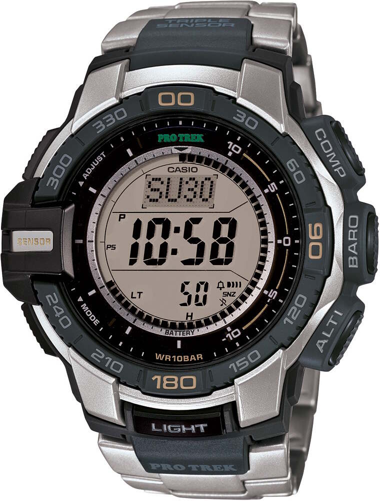 Casio ProTrek PRG-270D-7ER Solar on laadukas Pro Trek sarjan kello nyt erikoishintaan. Kello saa käyntivoimansa auringon valosta eli pariston vaihtoja ei tarvita. Kellon rungon leveys 52,4 mm ja paksuus 14,4 mm. Muita kellon ominaisuuksia: LED-taustavalo, kestää alhaisia lämpötiloja (-10 celsiusta), digitaalinen kompassi, 10000m altimetri, barometri, lämpömittari (-10 - +60 celsiusta), maailmanaika, auringon lasku/nousu näyttö, ajanotto, ajastin, 5 hälytystä, tasatuntisignaali, näppäinäänet päälle/pois, akunvaraus osoitin, 12/24h näyttö, ikuinen kalenteri ja 100m vesitiiveys. Kello painaa 149 grammaa. Casio kelloille myönnetään 2 vuoden takuu ja ne toimitetaan valmistajan alkuperäisessä rasiassa.