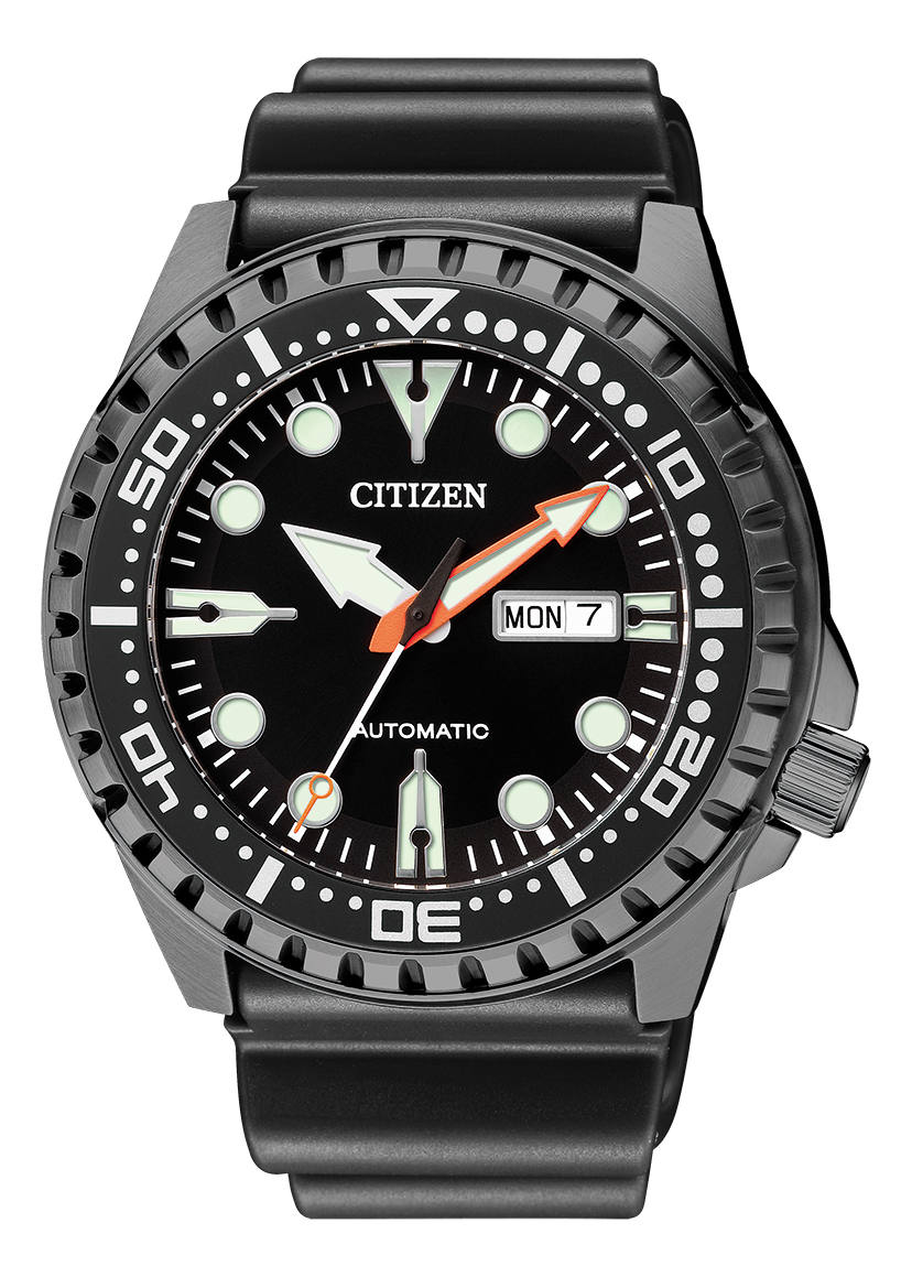 Citizen Automatic NH8385-11E on mainio tuote aloittelevalle kelloharrastajalle. Automaattikoneistolla varustettuna tämä kello tarjoaa erinomaista laatua huokeaan hintaan. Päivittäisessä käytössä käteviä ominaisuuksia ovat mm. luminoituvat indeksit sekä päivyri, josta näet helposti yhdellä vilkaisulla sekä päivämäärän että viikonpäivän. Pyöritettävän kehänsä ansiosta kello muuntautuu hetkessä niin ajastimeksi kuin ajanottimeksikin. Kellon runko on 46 mm leveä ja valmistettu ruostumattomasta teräksestä. Kumirannekkeella leveyttä on puolestaan 24 mm. Kello on vesitiivis ja siinä on mineraalilasi. Citizen-kelloilla on kahden vuoden takuu, jonka voit pidentää kolmeen vuoteen rekisteröimällä Citizen-kello -sivulla .