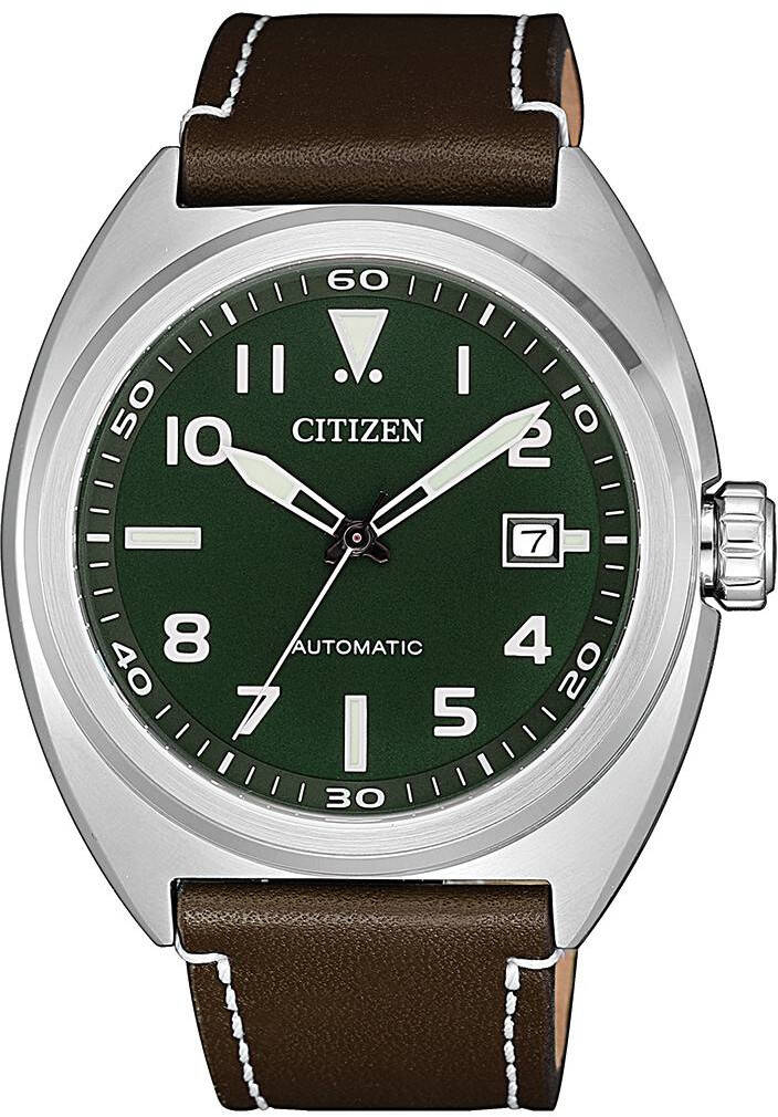 Citizenin upea Automatic NJ0100-38X -rannekello pitäytyy perinteikkäässä muotoilussa ja onkin ajaton vaihtoehto jokaisen miehen ranteeseen. Teräksisen rungon leveys on 42 mm ja siihen kiinnittyy aito 22 mm nahkaranneke. 8210-kaliiperin automaattikoneistossa on 21 kiveä ja se värähtelee 21 600 kertaa tunnissa. Tässä mallissa on tummanvihreä kellotaulu, päivyrinäyttö sekä luminoituvat viisarit ja indeksit. 10 ATM -vesitiiveytensä ansiosta kello kestää hyvin myös uimista.