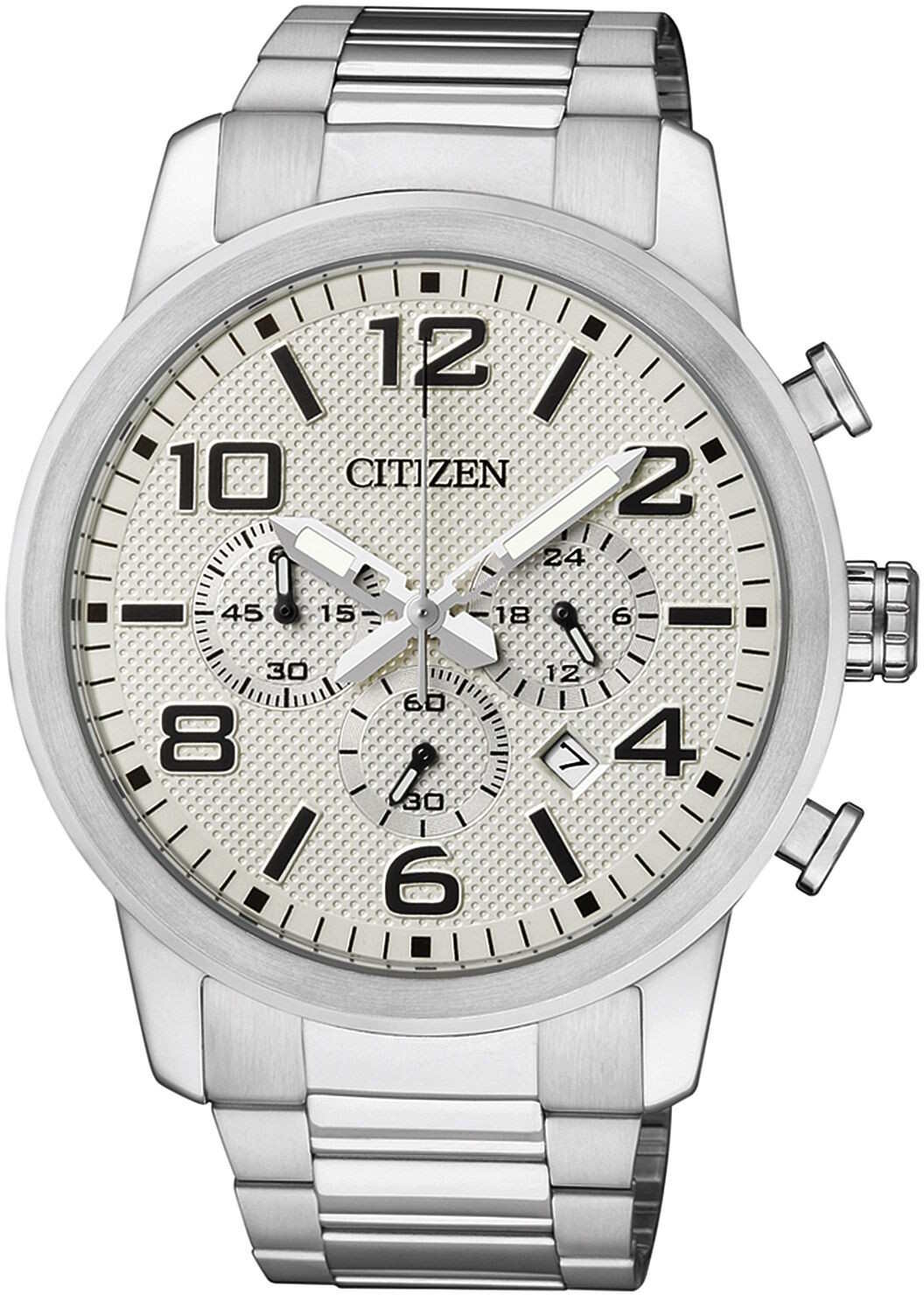 Miesten Citizen Chronograph AN8050-51A rannekello vaalealla kellotaululla, jossa on selkeät indeksit. Rungon leveys on 42mm ja rannekkeen 20mm. Runko ja ranneke ovat hopean/harmaan väriset. Kellossa on myös päivyri ja ajanotto. Citizen-kelloilla on kahden vuoden takuu, jonka voit pidentää kolmeen vuoteen rekisteröimällä Citizen-kello -sivulla .