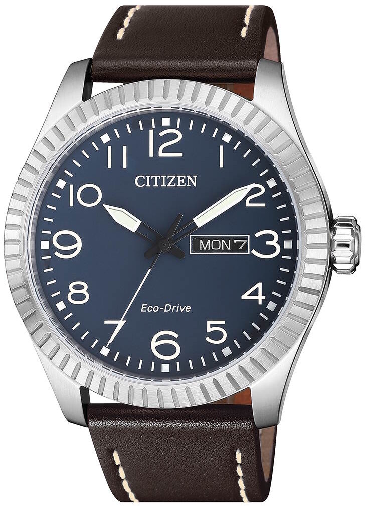 Citizen Eco-Drive BM8530-11LE -kellossa on selkeä sininen kellotaulu, ruskea nahkaranneke ja kaksoispäivyri kello kolmessa. Kellon Eco-Drive toimii valon voimalla ja kello lataakin käyttöenergiansa ympärilläsi olevasta valosta ympäristöystävälliseen titaani-litium-ioni-akkuun. Päivän käyntienergiatarve tulee täyteen vain 2 minuutin valohoidolla. Ja vaikka valoa ei olisi aina saatavilla niin ei hätää. Kellon käyntivara ilman latausta on 180 päivää! Ominaisuutena kellosta löytyy myös päivyri. Kellon rungon leveys on 42mm ja paksuus 10,3mm. Rannekkeen leveys kiinnityskohdasta 22mm. Citizen -kelloille myönnetään 2 vuoden takuu ja ne toimitetaan valmistajan alkuperäisessä pakkauksessa.