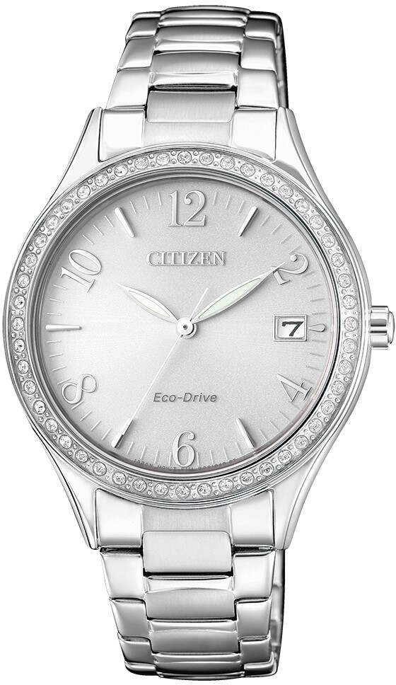 Hopeanvärisen Citizen EO1180-82A Eco-Drive Elegant -kellon kellotaulua kiertävät kirkkaat zirconia korukivet. Kellon rungon leveys 33mm ja paksuus 8mm. Rannekkeen leveys kiinnityskohdasta 16mm. Citizen Eco-Drive- kellot toimivat valon voimalla ja lataavat käyntivirtaa ympäristöystävälliseen titaani-litium-ioni-akkuun. Yhden vuorokauden käyntiin tarvittava sähköenergia saadaan pitämällä kelloa pari minuuttia valossa. Citizen-kelloilla on kahden vuoden takuu, jonka voit pidentää kolmeen vuoteen rekisteröimällä Citizen-kello -sivulla .