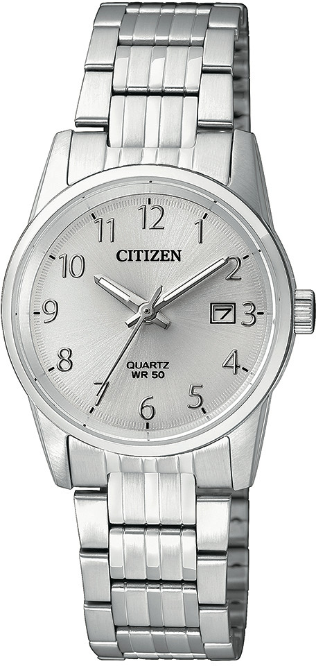 Citizen EU6000-57B on pieni ja sivistynyt naisten rannekello. Tämä hopeanvärinen yksilö on valmistettu ruostumattomasta teräksestä ja sen sunray-kellotaulua suojaa laadukas mineraalilasi. Päivyri ja luminoituvat viisarit tarjoavat käytännöllisyyttä tyylin rinnalle. Kellon rungon halkaisija on 27 mm ja rannekkeen leveys 15 mm. Tutustu myös muihin kauniisiin värivaihtoehtoihin!