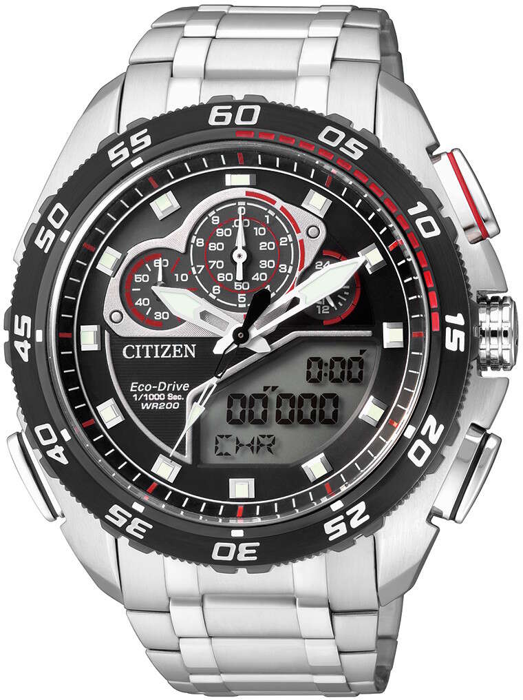 Citizen Promaster JW0124-53E on näyttävä kello jossa on monipuoliset ominaisuudet. Ominaisuuksina ajanotto 1/1000 sekunnin tarkkuudella, väliaika/kierrosaika, 20 kierroksen muisti, keskinopeuden laskin, hälytys, ajastin, maailmanaika, LED -valo ja päivyri. Kellon rungon leveys on 44mm ja paksuus 15mm. Rannekkeen leveys kiinnityskohdasta 24mm. Citizen-kelloilla on kahden vuoden takuu, jonka voit pidentää kolmeen vuoteen rekisteröimällä Citizen-kello -sivulla .