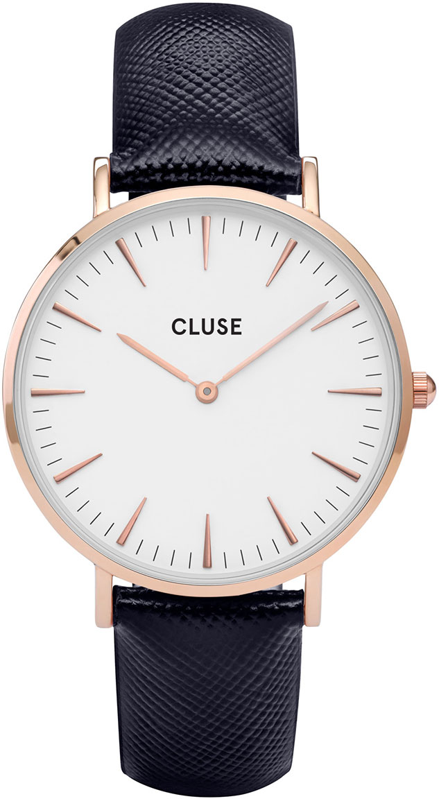 Cluse CL18029 La Boheme Rose Gold White/Midnight Blue -kellossa on näyttävä yönsininen nahkaranneke ja tyylikäs valkoinen kellotaulu. Kellon punakullan värisen rungon leveys on 38mm. Kellossa on Japanilaisen Miyotan valmistama laadukas Miyota 2025 paristokoneisto. Cluse kellot toimitetaan valmistajan alkuperäisissä pakkauksissa ja niille myönnetään 2 vuoden takuu.