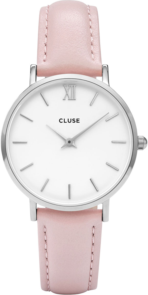 Cluse CL30005 Minuit Silver White/Pink -kellossa on pinkki nahkaranneke ja näyttävä valkoinen kellotaulu. Kellon hopeanvärisen rungon leveys on 33mm. Minuit kelloissa tyylikkäänä yksityiskohtana on roomalaisin numeroin esitetty klo 12 indeksi. Kellossa on laadukas Japanilainen paristokoneisto. Cluse kellot toimitetaan valmistajan alkuperäisissä pakkauksissa ja niille myönnetään 2 vuoden takuu.