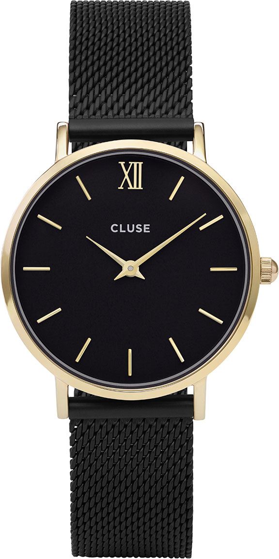 Cluse CL30026 Minuit Mesh Gold Black/Black -kellossa on musta teräksinen mesh-ranneke ja tyylikäs musta kellotaulu. Kellon mustan rungon leveys on 33mm. Minuit kelloissa tyylikkäänä yksityiskohtana on roomalaisin numeroin esitetty klo 12 indeksi. Kellossa on laadukas Japanilainen paristokoneisto. Cluse kellot toimitetaan valmistajan alkuperäisissä pakkauksissa ja niille myönnetään 2 vuoden takuu.