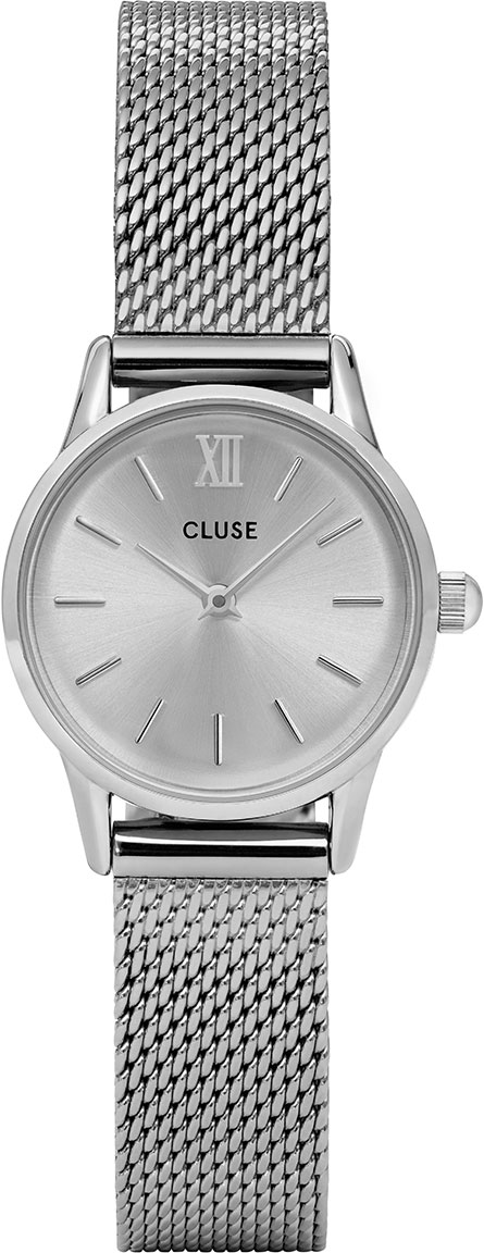 Cluse CL50001 La Vedette Mesh Full Silver -kello on siro ja naisellinen. Kellon teräksisen mesh-rannekkeen leveys kiinnityskohdasta on 12mm. Kellon hopeanvärisen rungon leveys on 24mm. Vedette kelloissa tyylikkäänä yksityiskohtana on roomalaisin numeroin esitetty klo 12 indeksi. Kellossa on laadukas Japanilainen paristokoneisto. Cluse kellot toimitetaan valmistajan alkuperäisissä pakkauksissa ja niille myönnetään 2 vuoden takuu.