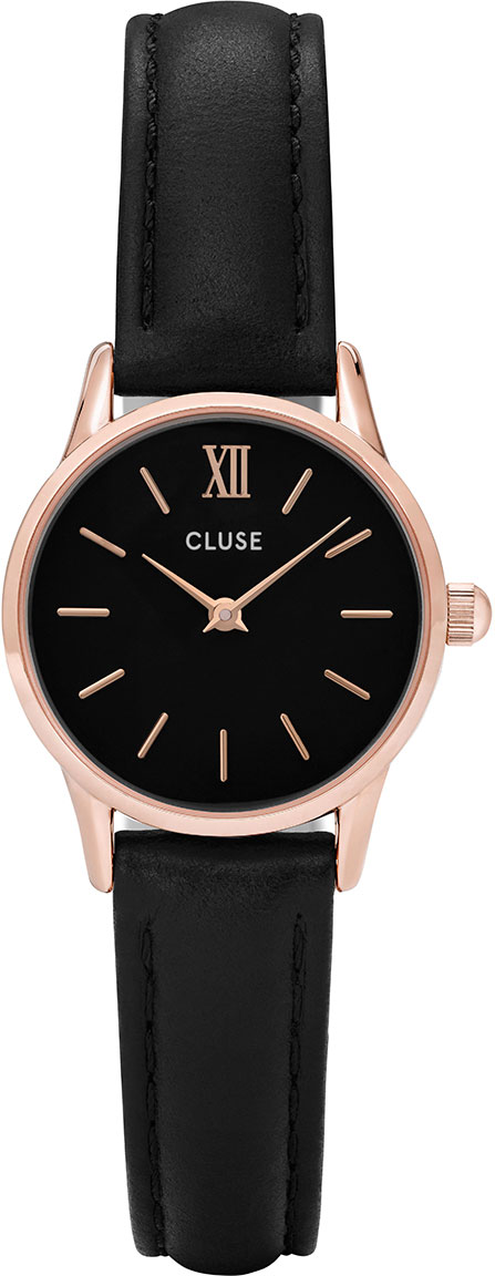 Cluse CL50011 La Vedette Rose Gold Black/Black -kellossa on tyylikäs musta kellotaulu. Kellon näyttävän mustan nahkarannekkeen leveys kiinnityskohdasta on 12mm. Kellon punakullan värisen rungon leveys on 24mm. Vedette kelloissa tyylikkäänä yksityiskohtana on roomalaisin numeroin esitetty klo 12 indeksi. Kellossa on laadukas Japanilainen paristokoneisto. Cluse kellot toimitetaan valmistajan alkuperäisissä pakkauksissa ja niille myönnetään 2 vuoden takuu.