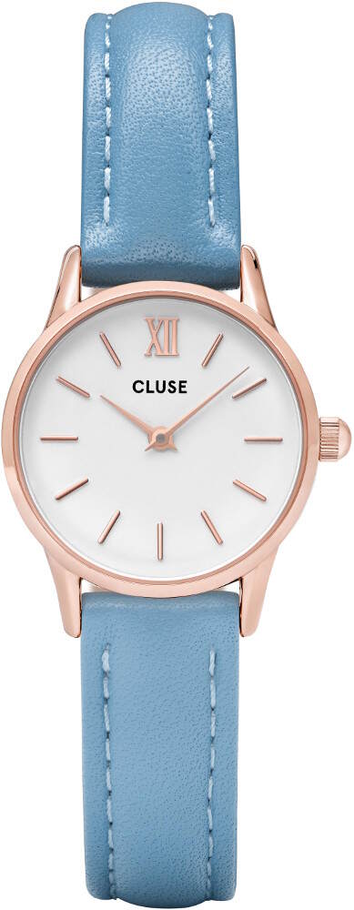 Cluse CL50026 La Vedette Rose Gold Retro Blue -kellossa on tyylikäs valkoinen kellotaulu. Kellon retron sinisen nahkarannekkeen leveys kiinnityskohdasta on 12mm. Kellon punakullan värisen rungon leveys on 24mm. Vedette kelloissa tyylikkäänä yksityiskohtana on roomalaisin numeroin esitetty klo 12 indeksi. Kellossa on laadukas Japanilainen paristokoneisto. Cluse kellot toimitetaan valmistajan alkuperäisissä pakkauksissa ja niille myönnetään 2 vuoden takuu.