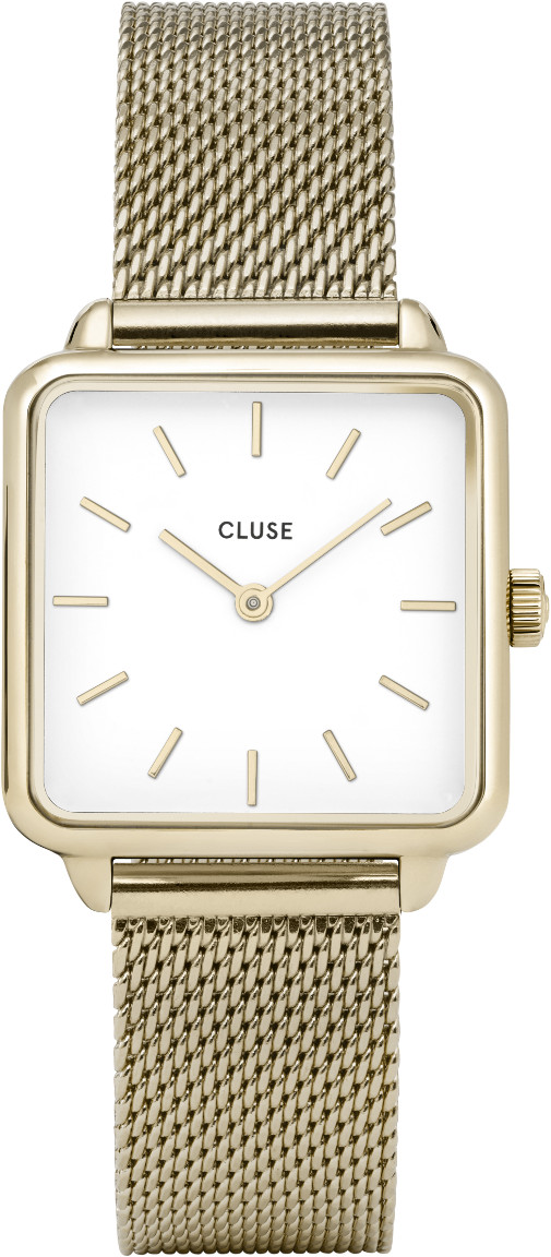 Cluse La Garconne CL60002 Gold/White -rannekellossa kohtaavat ylellisyys ja sisimmästä kumpuava elämänilo. Tämä Cluse -mallisto leikittelee kulmikkaalla designilla pitäen samalla kellotaulun ihanan yksinkertaisena. Kellon runko on 28,5 mm leveä ja valmistettu messingistä. 16 mm leveän teräsrannekkeen voi helposti vaihtaa myös Minuit -sarjan rannekkeisiin.