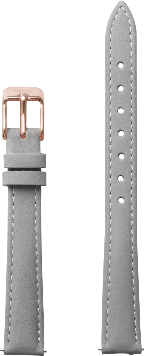 Cluse La Vedette CLS506 Grey/Rose Gold -ranneke on materiaaliltaan aitoa nahkaa. Tämä klassisen harmaa malli on ranteessa todella tyylikäs ja sen solki on väriltään punakultainen. Rannekkeen leveys kiinnityskohdista on sirot 12 mm ja se sopii yhteen mm. kaikkien Clusen La Vedette -sarjan kellojen kanssa. Kiinnitys tapahtuu helposti kotikonstein ja ilman työkaluja.