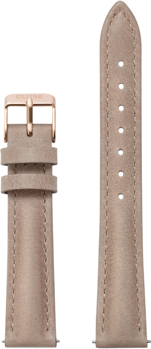Cluse Minuit CLS359 Hazelnut/Rose Gold -ranneke on materiaaliltaan aitoa nahkaa. Tämä hasselpähkinän värinen malli on ranteessa todella tyylikäs ja sen solki on väriltään punakultainen. Rannekkeen leveys kiinnityskohdista on 16 mm ja se sopii Minuit-sarjan kellojen lisäksi myös mm. Clusen Triomphe- ja La Roche Petite -tuotteisiin. Kiinnitys tapahtuu helposti kotikonstein ja ilman työkaluja.