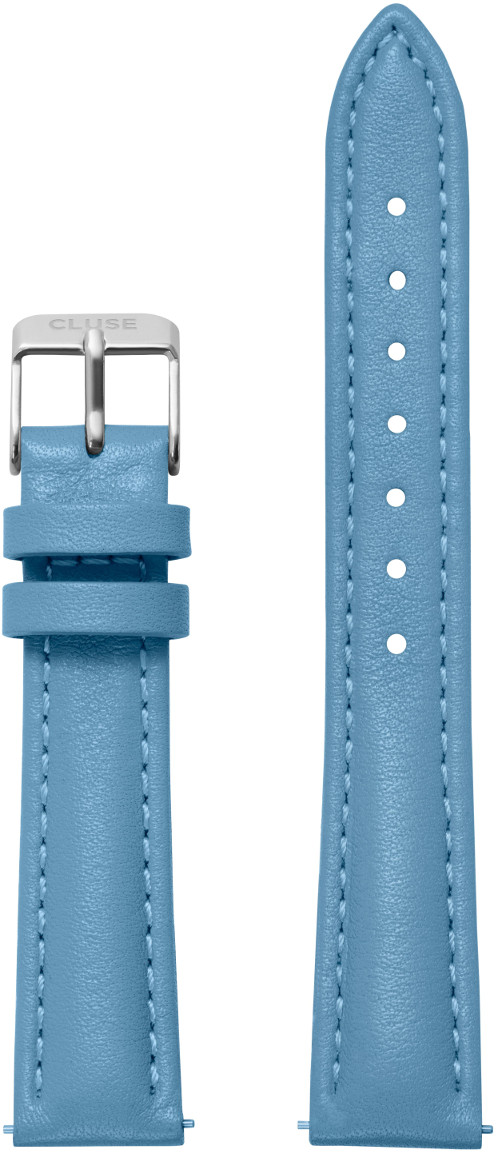 Cluse Minuit CLS367 Retro Blue/Silver -ranneke on materiaaliltaan aitoa nahkaa. Tämä vaaleansininen malli on ranteessa todella pirteä ja sen solki on väriltään hopeinen. Rannekkeen leveys kiinnityskohdista on 16 mm ja se sopii Minuit-sarjan kellojen lisäksi myös mm. Clusen Triomphe- ja La Roche Petite -tuotteisiin. Kiinnitys tapahtuu helposti kotikonstein ja ilman työkaluja.