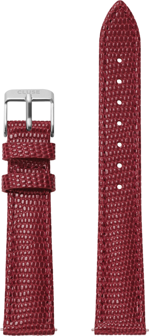 Cluse Minuit CLS381 Deep Red Lizard/Silver -ranneke on pinnasta suomukuvioinen ja materiaaliltaan aitoa nahkaa. Tämä tummanpunainen malli on ranteessa todella räväkkä ja sen solki on väriltään hopeinen. Rannekkeen leveys kiinnityskohdista on 16 mm ja se sopii Minuit-sarjan kellojen lisäksi myös mm. Clusen Triomphe- ja La Roche Petite -tuotteisiin. Kiinnitys tapahtuu helposti kotikonstein ja ilman työkaluja.