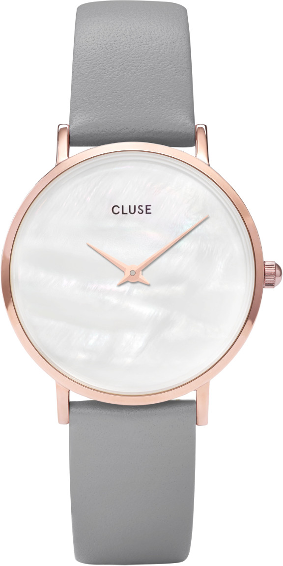Cluse Minuit La Perle CL30049 Rose Gold/White Pearl/Stone Grey -rannekellon minimalistinen design korostaa upeaa valkoista kellotaulua, jonka pinta on aitoa helmiäistä. Kellon runko on halkaisijaltaan 33 mm ja valmistettu messingistä. 16 mm leveän nahkarannekkeen voit vaihtaa helposti myös muihin Minuit-sarjan rannekkeisiin. Tässäkin mallissa viisareita liikuttaa laadukas japanilainen Miyota-koneisto.