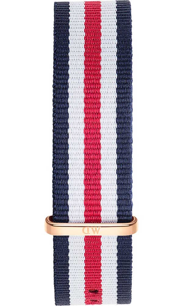 Daniel Wellington Canterbury nato-ranneke Rose 0302DW 20 mm on hieno kangasranneke miesten Daniel Wellington -rannekelloon. Sopii malleihin, joissa rannekkeen kiinnityskohdan leveys on 20 mm.