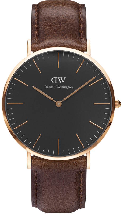 Daniel Wellington Classic Black Bristol 40mm DW00100125 rannekellossa on tyylikäs tummanruskea nahkaranneke, jonka leveys on 20mm ja pelkistetty musta kellotaulu. Kellon runko on pyöreä, tyylikäs ja ruusukullan värinen. Sen leveys on 40mm ja paksuus 6mm. Daniel Wellington -kellot toimitetaan valmistajan alkuperäisessä rasiassa postikuluitta ja niille myönnetään 2 vuoden takuu.
