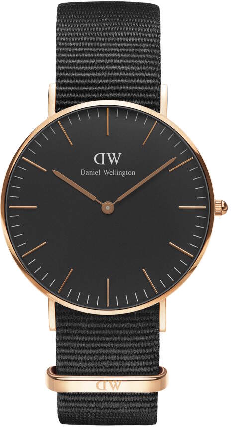 Daniel Wellington Classic Black Cornwall 36mm DW00100150 rannekellossa on kokomusta kankainen NATO-ranneke, jonka leveys on 18mm ja pelkistetty musta kellotaulu. Kellon runko on pyöreä, tyylikäs ja ruusukullan värinen. Sen leveys on 36mm ja paksuus 6mm. Daniel Wellington -kellot toimitetaan valmistajan alkuperäisessä rasiassa postikuluitta ja niille myönnetään 2 vuoden takuu.