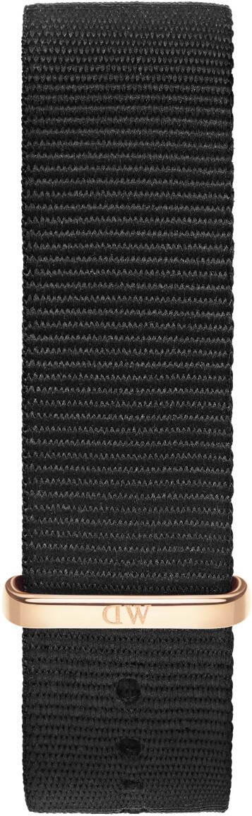 Daniel Wellington Classic Cornwall nato-ranneke Rose 20 mm DW00200135 on tyylikäs musta kangasranneke, jossa on punakullan värinen lukko. Ranneke sopii 40 mm leveisiin Daniel Wellington Classic -malleihin ja myös muihin kelloihin, joissa rannekkeen kiinnityskohdan leveys on 20 mm.