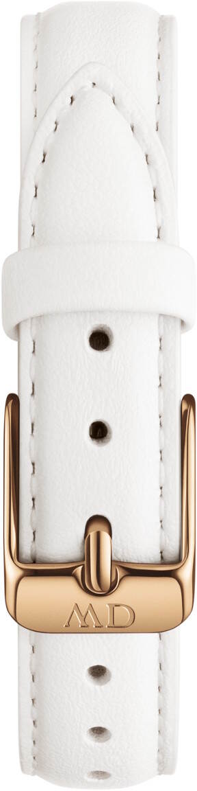 Daniel Wellington Classic Petite Bondi ranneke Rose 12mm DW00200197 on väriltään puhtaan valkoinen. Rannekkeen solki on punakullan värinen. Ranneke sopii 28mm leveisiin Daniel Wellington Classic Petite malleihin ja myös muihin kelloihin, joissa rannekkeen leveys kiinnityskohdasta on 12mm.