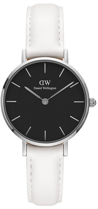 Daniel Wellington Classic Petite Bondi Silver DW00100286 -rannekellon tyyli on ihastuttavan naisellinen. Klassisen pelkistetty design ja hillitty värimaailma sulattavat sydämesi heti laatikon avattuasi. Valkoinen 12 mm leveä nahkaranneke on tyylinsä lisäksi myös erittäin miellyttävän tuntuinen. Hopeanvärinen, 28 mm leveä runko puolestaan on valmistettu ruostumattomasta teräksestä. Kellossa on mineraalilasi ja se on roisketiivis. Saatavilla myös 32 mm koossa ja punakullan värisellä rungolla.