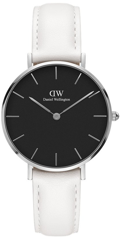 Daniel Wellington Classic Petite Bondi Silver DW00100284 -rannekellon tyyli on ihastuttavan naisellinen. Klassisen pelkistetty design ja hillitty värimaailma sulattavat sydämesi heti laatikon avattuasi. Valkoinen 14 mm leveä nahkaranneke on tyylinsä lisäksi myös erittäin miellyttävän tuntuinen. Hopeanvärinen, 32 mm leveä runko puolestaan on valmistettu ruostumattomasta teräksestä. Kellossa on mineraalilasi ja se on roisketiivis. Saatavilla myös 28 mm koossa ja punakullan värisellä rungolla.