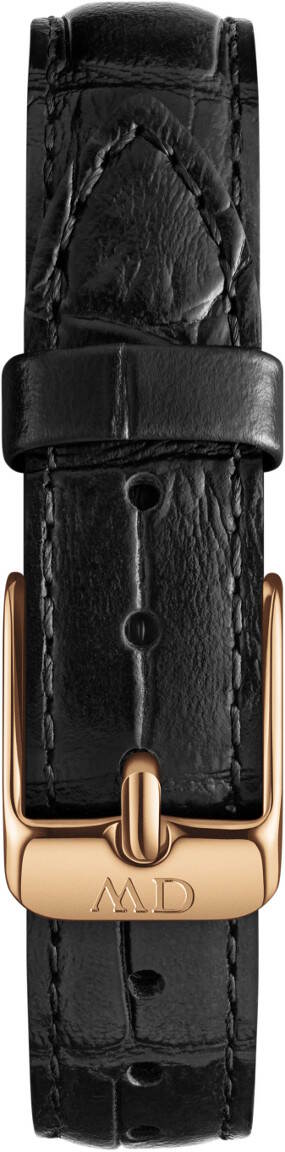 Daniel Wellington Classic Petite Reading ranneke Rose 12mm DW00200182 on klassinen musta krokotiilikuvioitu nahkaranneke. Rannekkeen solki on hopeanvärinen. Ranneke sopii 28mm leveisiin Daniel Wellington Classic Petite malleihin ja myös muihin kelloihin, joissa rannekkeen leveys kiinnityskohdasta on 12mm.