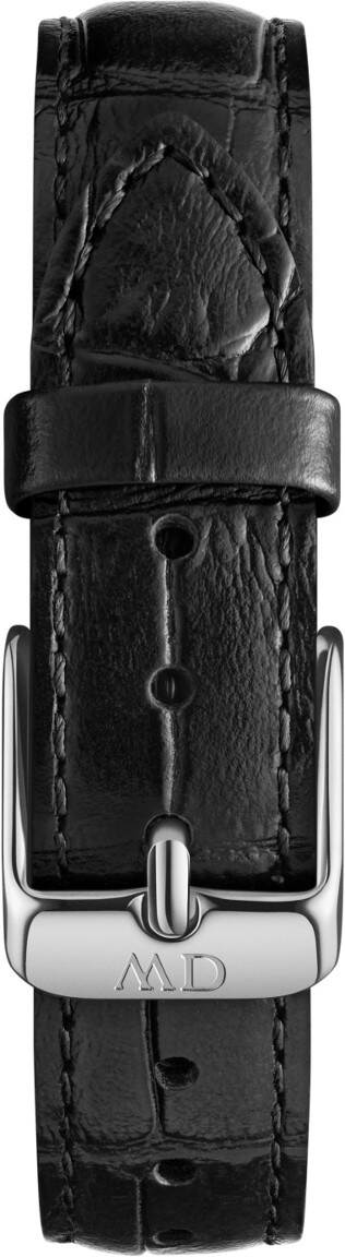 Daniel Wellington Classic Petite Reading ranneke Silver 14mm DW00200149 on klassinen musta krokotiilikuvioitu nahkaranneke. Rannekkeen solki on hopeanvärinen. Ranneke sopii 32mm leveisiin Daniel Wellington Classic Petite malleihin ja myös muihin kelloihin, joissa rannekkeen leveys kiinnityskohdasta on 14mm.