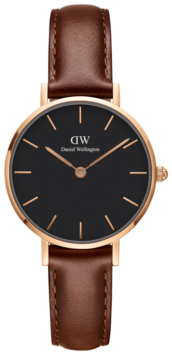 Daniel Wellington Classic Petite St Mawes RG Black 28mm DW00100225 -rannekello erottuu tyylikkäästi edukseen. Kellon runko on valmistettu punakullan värisestä ruostumattomasta teräksestä ja kellon tummanruskea ranneke on aitoa nahkaa. Kellon rungon leveys on 28mm ja paksuus 6mm. Rannekkeen leveys kiinnityskohdasta on 12mm. Daniel Wellington -kelloille myönnetään 2 vuoden takuu ja ne toimitetaan valmistajan alkuperäisessä rasiassa.