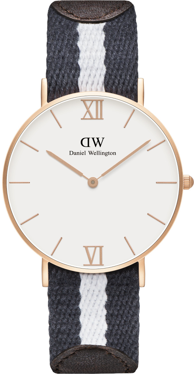 Tyylikäs Daniel Wellington Grace Glasgow 0552DW rannekello kangas/nahkarannekkeella ja punakullan värisellä rungolla. Kellon ruostumattomasta teräksestä valmistetun rungon leveys on 36mm ja paksuus vain 6mm. Kangasrannekkeen leveys on 18mm. Daniel Wellington kellot toimitetaan valmistajan alkuperäisessä rasiassa ja niille myönnetään 2 vuoden takuu.