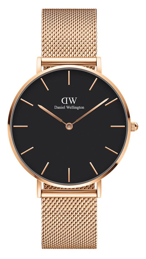 Daniel Wellington Grand Petite Melrose Black 36 mm DW00100303 -kellossa on punakullanvärinen mesh-ranneke sekä runko ja klassinen musta kellotaulu. Kellon rungon leveys on 36 mm ja paksuus 6 mm. Rannekkeen leveys kiinnityskohdasta on 16 mm. Rannekkeen pituus on säädettävissä välillä 160-215 mm. Daniel Wellington -kelloille myönnetään 2 vuoden takuu ja ne toimitetaan valmistajan alkuperäisessä rasiassa.