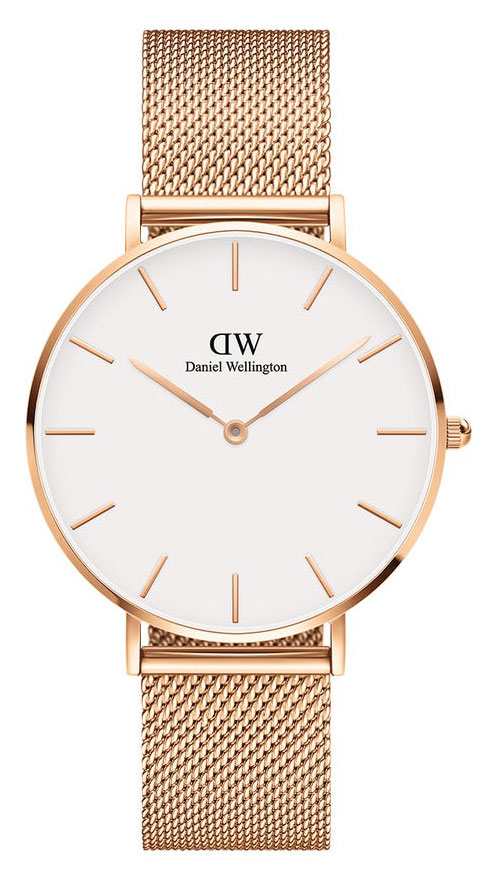 Daniel Wellington Grand Petite Melrose White 36 mm DW00100305 -kellossa on punakullanvärinen mesh-ranneke sekä runko ja klassinen munankuoren valkoinen kellotaulu. Kellon rungon leveys on 36 mm ja paksuus 6 mm. Rannekkeen leveys kiinnityskohdasta on 16 mm. Rannekkeen pituus on säädettävissä välillä 160-215 mm. Daniel Wellington -kelloille myönnetään 2 vuoden takuu ja ne toimitetaan valmistajan alkuperäisessä rasiassa.