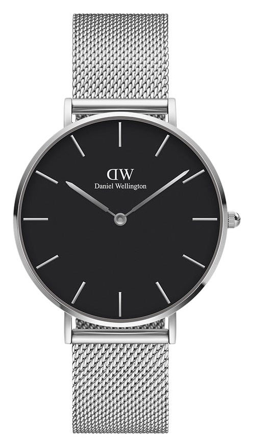 Daniel Wellington Grand Petite Sterling Black 36 mm DW00100304 -kellossa on hopeanvärinen mesh-ranneke sekä runko ja klassinen musta kellotaulu. Kellon rungon leveys on 36 mm ja paksuus 6 mm. Rannekkeen leveys kiinnityskohdasta on 16 mm. Rannekkeen pituus on säädettävissä välillä 160-215 mm. Daniel Wellington -kelloille myönnetään 2 vuoden takuu ja ne toimitetaan valmistajan alkuperäisessä rasiassa.