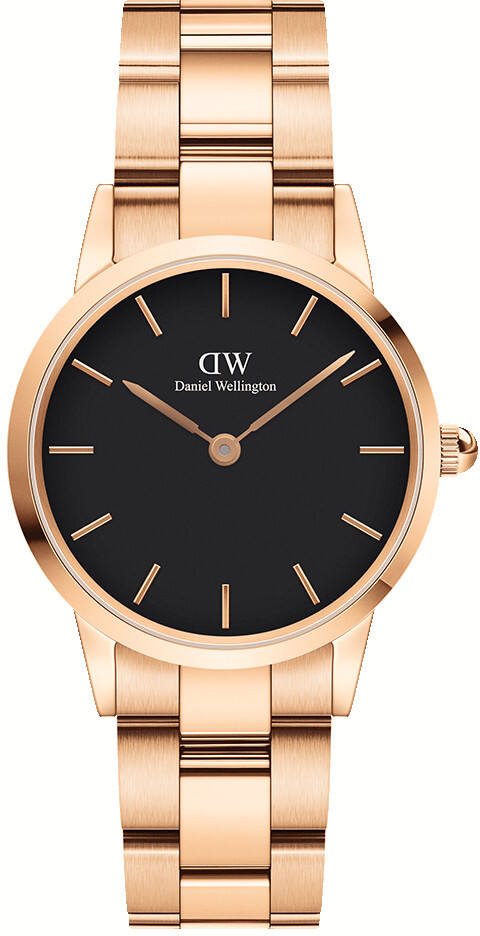 Daniel Wellington Iconic Link 28 Rose Gold Black DW00100214 -palauttaa klassisen muotoilun kellomarkkinoille. Iconic Link -malleissa on kapeneva kolmiosainen teräsranneke, joka on valmistettu ruotumattomasta teräksestä. Rannekkeessa on kätevä linkkulukko. Tässä mallissa on punakullan värinen runko sekä ranneke ja musta kellotaulu. Kellon rungon leveys on 28 mm ja paksuus 8 mm. Rannekke sopii maximissaan 187mm ympärysmitaltaan olevaan ranteeseen. Daniel Wellington -kelloille myönnetään 2 vuoden takuu ja ne toimitetaan valmistajan alkuperäisessä rasiassa.