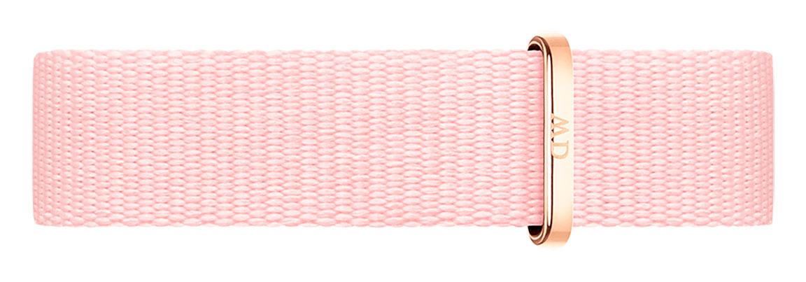 Daniel Wellington Petite 14 Rosewater ranneke DW00200171 on kaunis vaaleanpunainen nato-ranneke, jossa on ruusukullanvärinen lukko. Kangasranneke sopii 32 mm leveisiin Daniel Wellington Petite -malleihin ja myös muihin kelloihin, joissa rannekkeen kiinnityskohdan leveys on 14 mm.