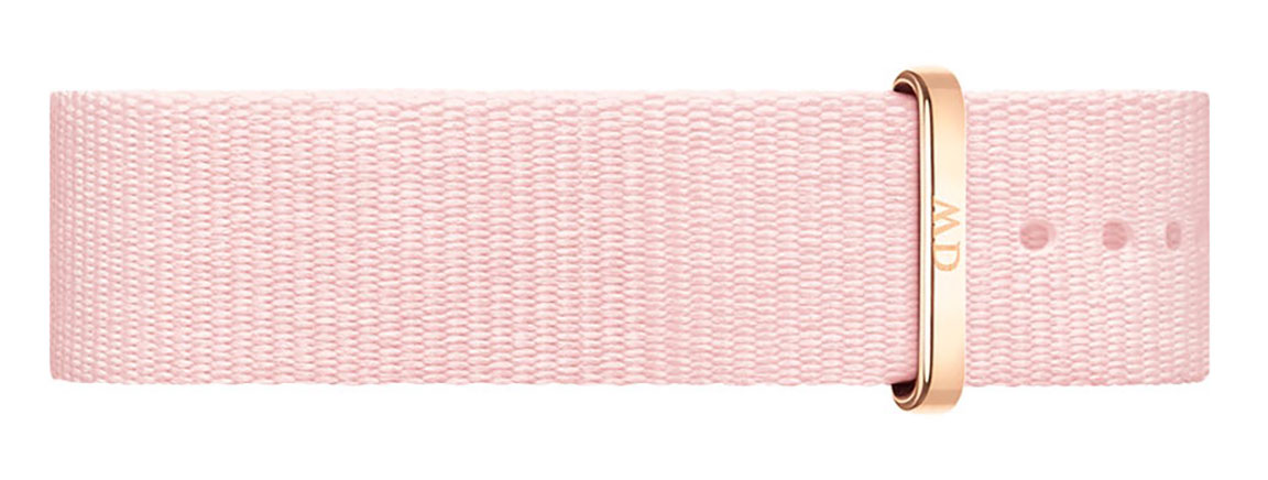Daniel Wellington Petite 16 Rosewater ranneke DW00200245 on kaunis vaaleanpunainen nato-ranneke, jossa on ruusukullanvärinen lukko. Kangasranneke sopii 36 mm leveisiin Daniel Wellington Petite -malleihin ja myös muihin kelloihin, joissa rannekkeen kiinnityskohdan leveys on 16 mm.