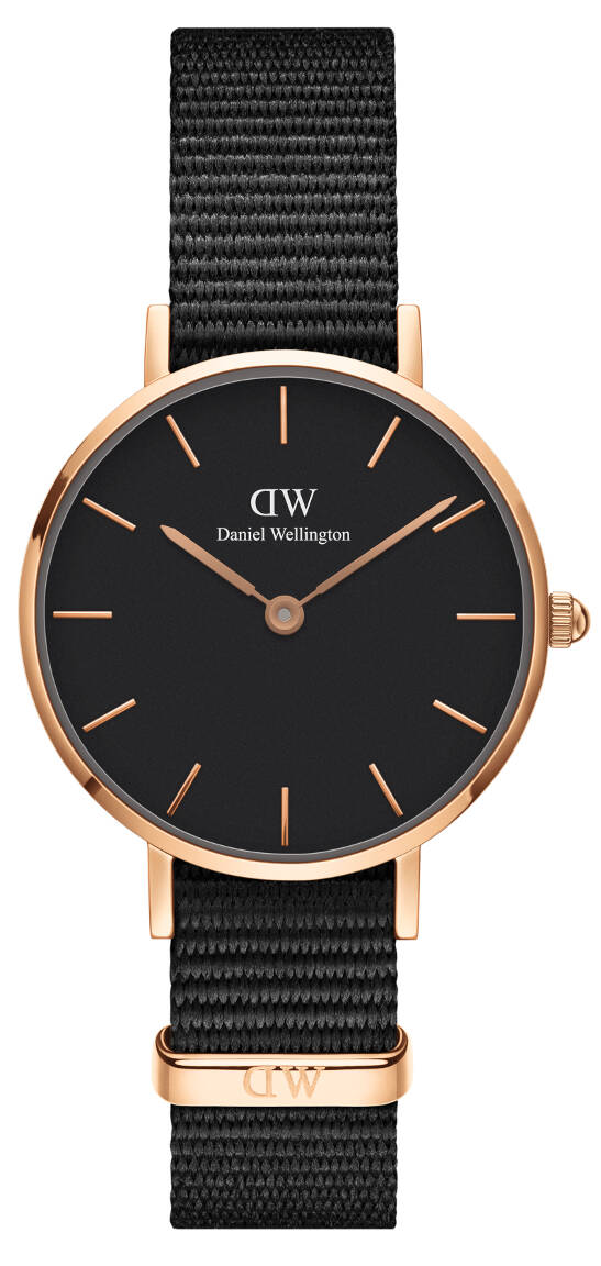 Daniel Wellington Petite Cornwall RG Black 28mm DW00100247 -rannekello sopii sinulle, joka haet jokaiseen elämäntilanteeseen sopivaa ajannäyttäjää. Kellon runko on valmistettu punakullan värisestä ruostumattomasta teräksestä ja ranneke on nato-kankainen. Kellon rungon leveys on 28mm ja paksuus 6mm. Rannekkeen leveys kiinnityskohdasta on 12mm. Daniel Wellington -kelloille myönnetään 2 vuoden takuu ja ne toimitetaan valmistajan alkuperäisessä rasiassa.