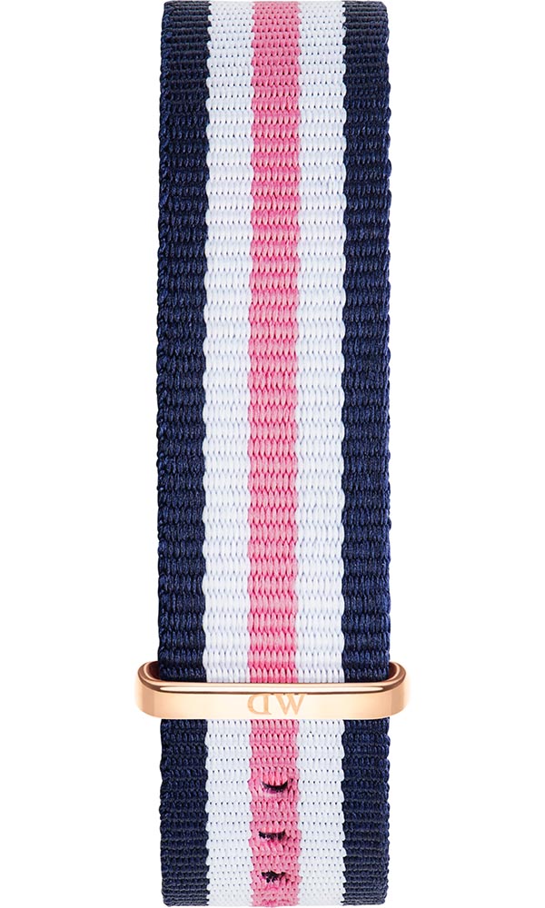 Kankainen nato-ranneke naisten Daniel Wellington -rannekelloon. Rannekkeessa on punakultainen solki. Leveys 18 mm ja toimitus postikuluitta.