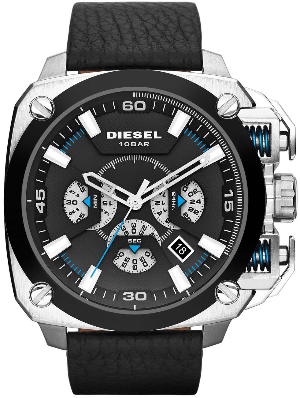 Diesel BAMF DZ7345 on massiivinen ja näyttävä kello. Ominaisuuksina ajanotto sekä päivyri. Kellon rungon leveys 50mm ja paksuus 14mm. Rannekkeen leveys kiinnityskohdasta 26mm. Diesel kelloille myönnetään 2 vuoden takuu ja ne toimitetaan valmistajan alkuperäisessä rasiassa.