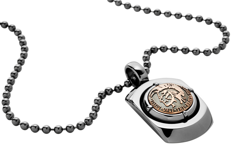Miesten Diesel DX0801060 kaulakoru. Koru on valmistettu ruostumattomasta teräksestä ja korun pituus on 55-60cm. Riipuksen leveys on 22mm ja pituus 32mm. Diesel korut toimitetaan alkuperäisessä valmistajan rasiassa.