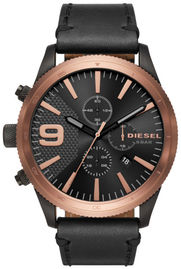 Diesel DZ4445 Rasp Chronograph -kellon kuparin värinen kellotaulun kehä antaa näyttävän säväyksen muuten mustaan kelloon. Ominaisuuksina ajanotto sekä päivyri. Ajanoton painikkeet ja kellon nuppi on käytännöllisesti sijoitettu kello yhdeksään, jotta ne eivät painaisi kämmenselkään. Kellon rungon leveys on 51mm ja paksuus 13mm. Rannekkeen leveys kiinnityskohdasta 26mm. Diesel kelloille myönnetään 2 vuoden takuu ja ne toimitetaan valmistajan alkuperäisessä rasiassa.