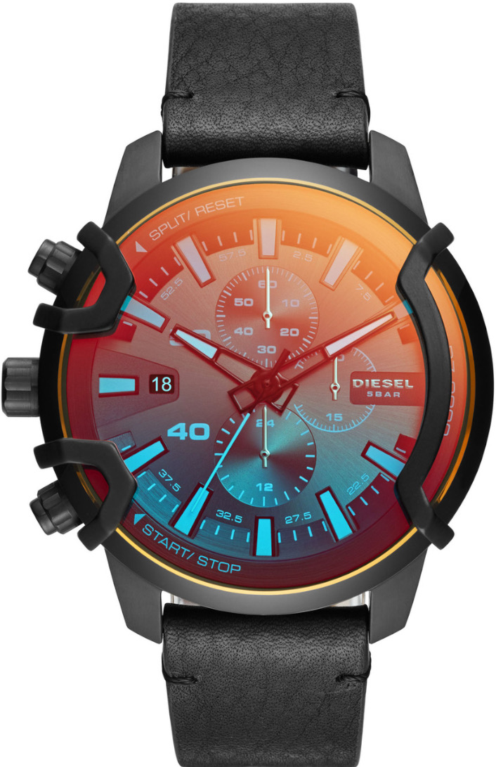 Diesel Griffed Black leather Chronograph DZ4519-rannekellossa on 48 mm:iä leveä harjatusta ruostumattomasta teräksestä valmistettu musta runko ja paksu eri väreissä hehkuva iiridescent-mineraalilasi, joka on kiinnitetty runkoon metallisin pidikkein antaen kellotaululle ilmavuutta. Musta pyöreä kellotaulua sisältää 12 tunnin kellon, ajanoton, päivyrin. Rungon vasemmalla puolella on suuret painikkeet, josta kelloa on helppo säätää. Ranneke on mustaa nahkaa, rannekkeen ja kiinnityskohdan leveys on 22 mm ja pituus on 16-22 cm. Rungon paksuus on 14 mm. Kellotaulun takana on Dieselin Only the brave-logo. Diesel-kellot toimitetaan valmistajan alkuperäisessä pakkauksessa ja niillä on 2 vuoden takuu.