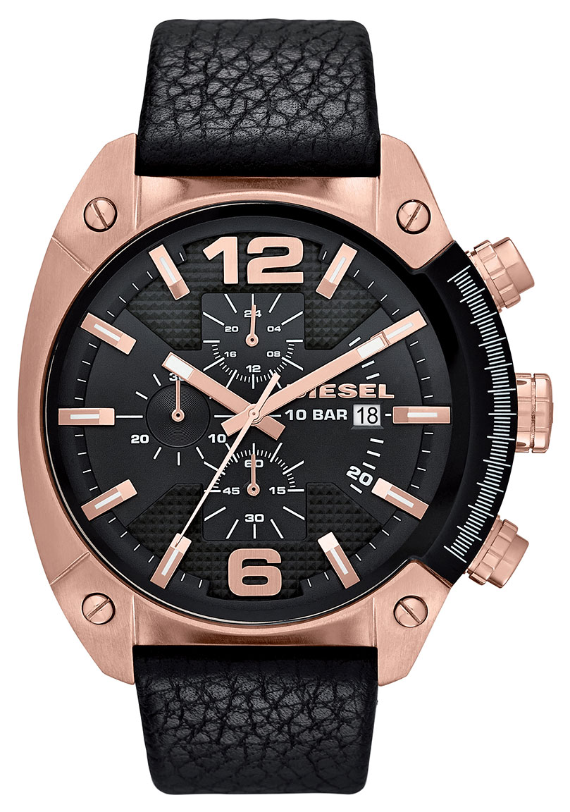 49 mm leveä Diesel Overflow Chronograph DZ4297 on kookas ja persoonallinen miesten rannekello. Mustalla 24 mm nahkarannekkeella varustetussa kellossa näyttävin yksityiskohta on ehdottomasti sen epäsymmetrinen kehä. Kellotaulusta löytyy sekuntikello ja päivyri sekä luminoituvat indeksit auttamaan pimeällä operointia. Mineraalilasi suojaa kelloa naarmuuntumiselta. Tämä malli kestää vaivatta myös uimista. Diesel-kelloille myönnetään 2 vuoden takuu ja ne toimitetaan valmistajan alkuperäisessä rasiassa.