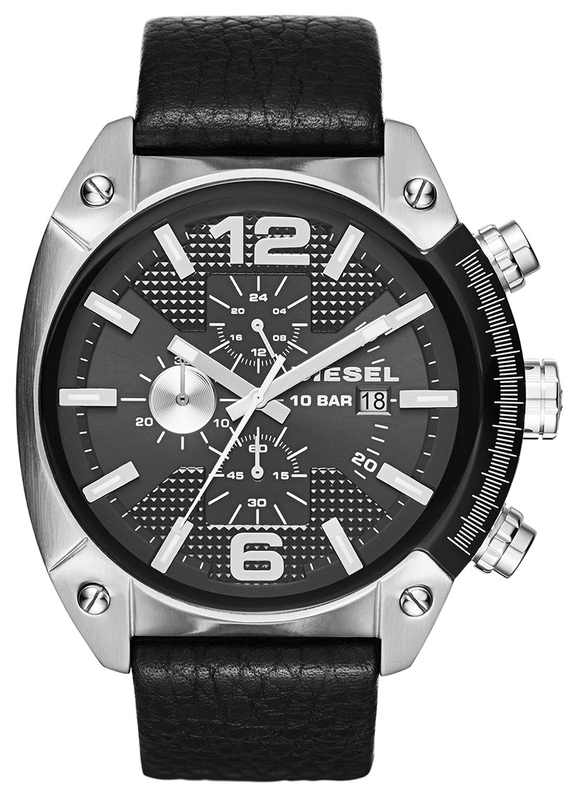49 mm leveä Diesel Overflow Chronograph DZ4341 on kookas ja persoonallinen miesten rannekello. Mustalla 24 mm nahkarannekkeella varustetussa kellossa näyttävin yksityiskohta on ehdottomasti sen epäsymmetrinen kehä. Kellotaulusta löytyy sekuntikello ja päivyri sekä luminoituvat indeksit auttamaan pimeällä operointia. Mineraalilasi suojaa kelloa naarmuuntumiselta. Tämä malli kestää vaivatta myös uimista. Diesel-kelloille myönnetään 2 vuoden takuu ja ne toimitetaan valmistajan alkuperäisessä rasiassa.